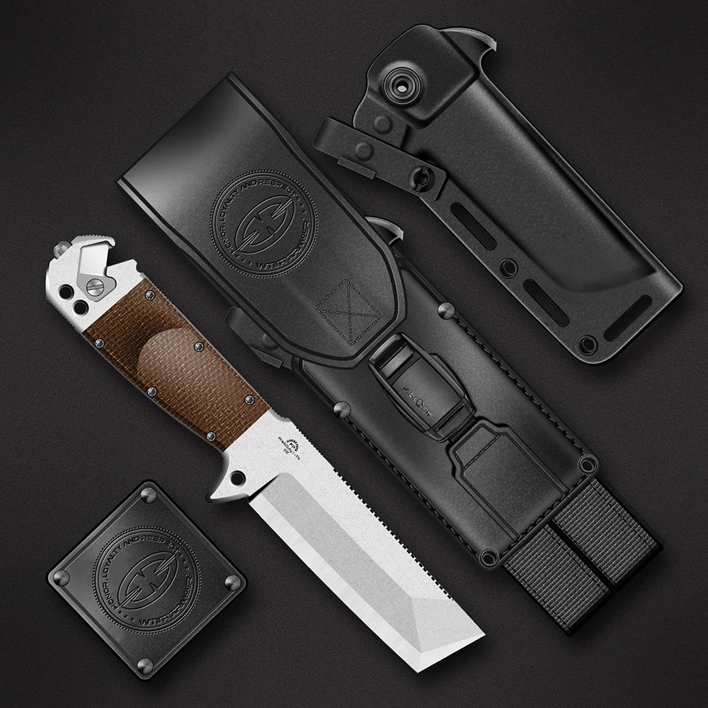 The Preik Duty series is designed for police, security, and outdoor operations. It excels in breaching, window breaking, cutting seatbelts, clearing paths, camouflage, and wilderness survival. Every feature has been tested in real—world scenarios and extreme conditions. Whether on patrol, in rescue operations, or exploring the outdoors, it is a dependable companion. Every aspect of the blade, handle, and sheath is rigorously verified for reliability. Florian’s knives are not theoretical—they are professional tools honed in action.