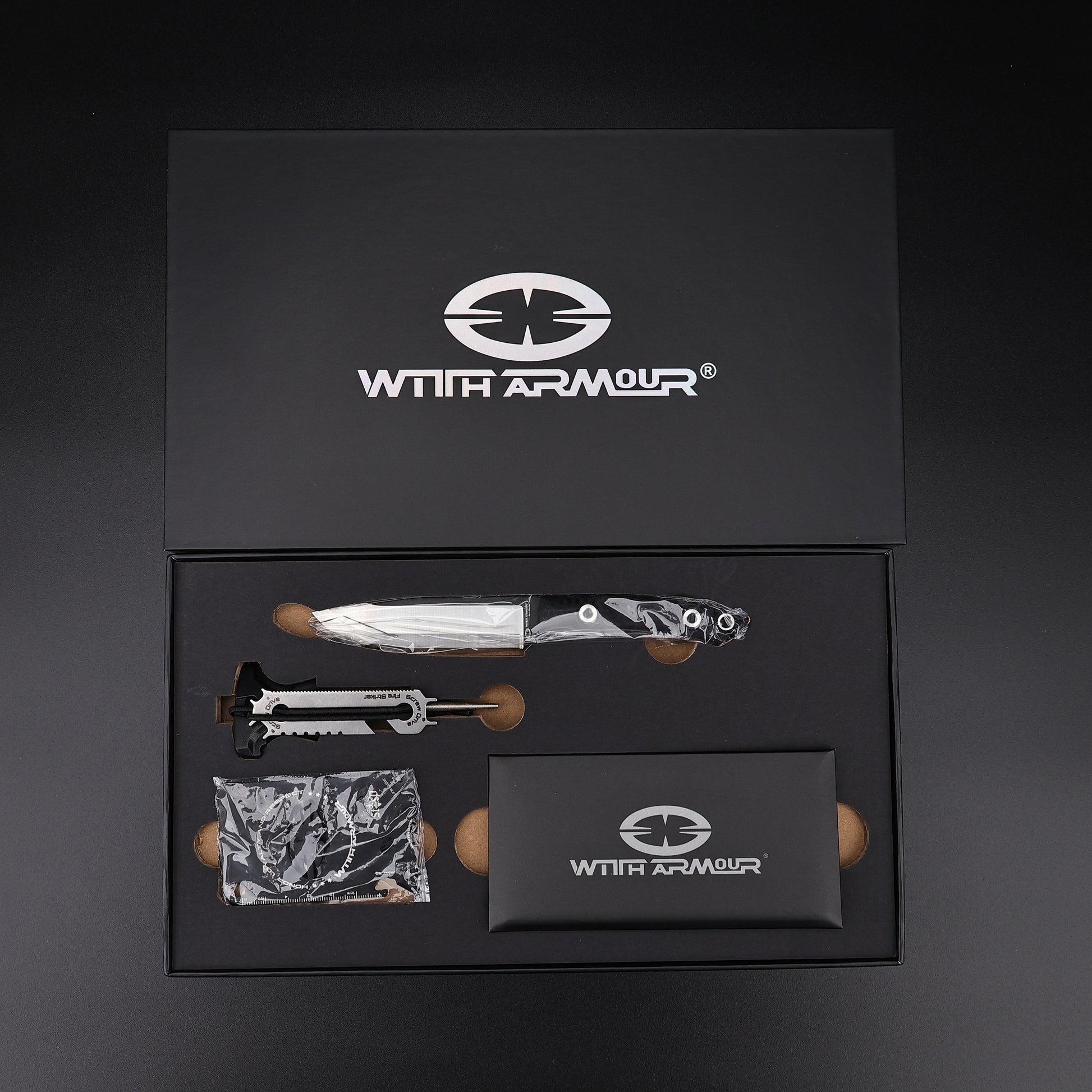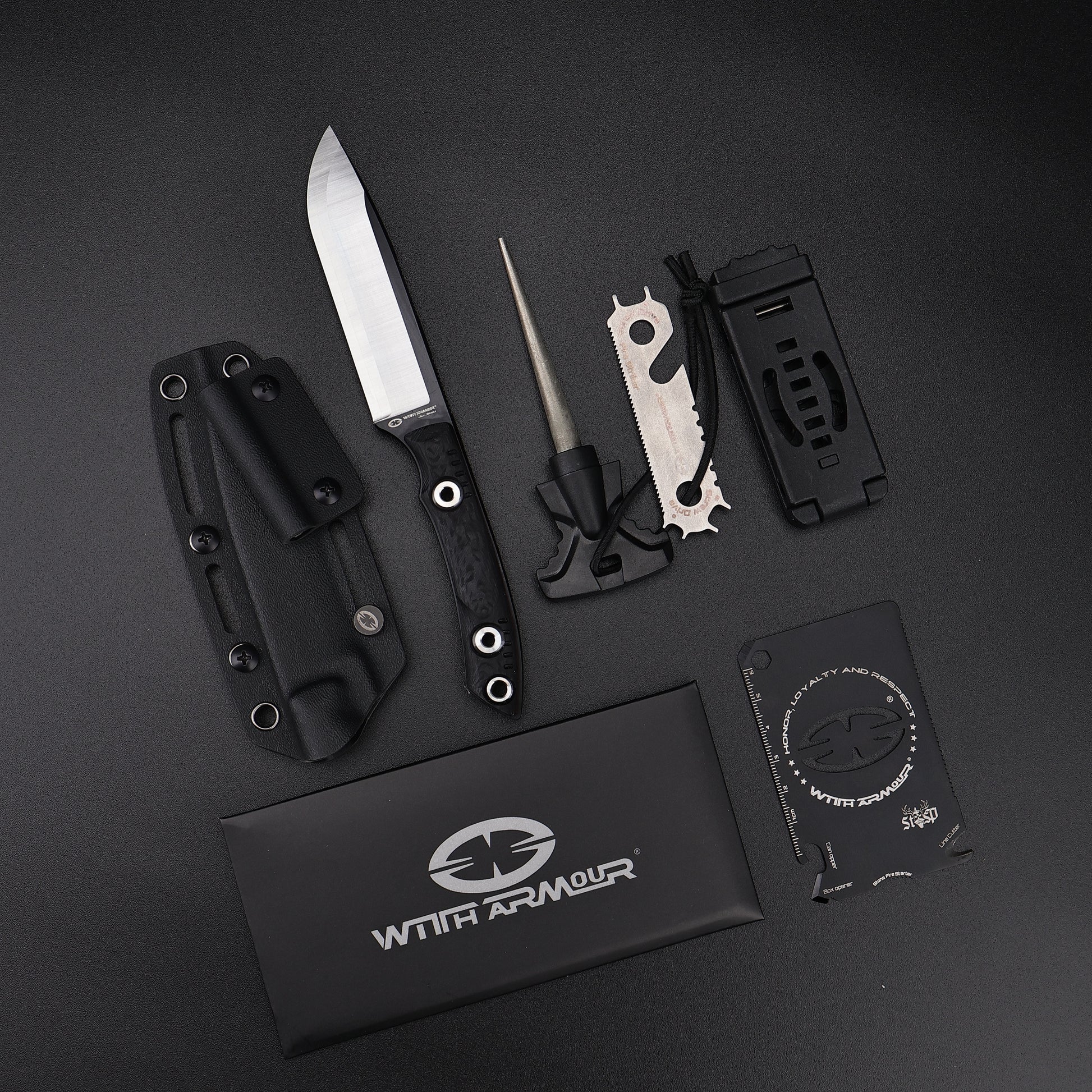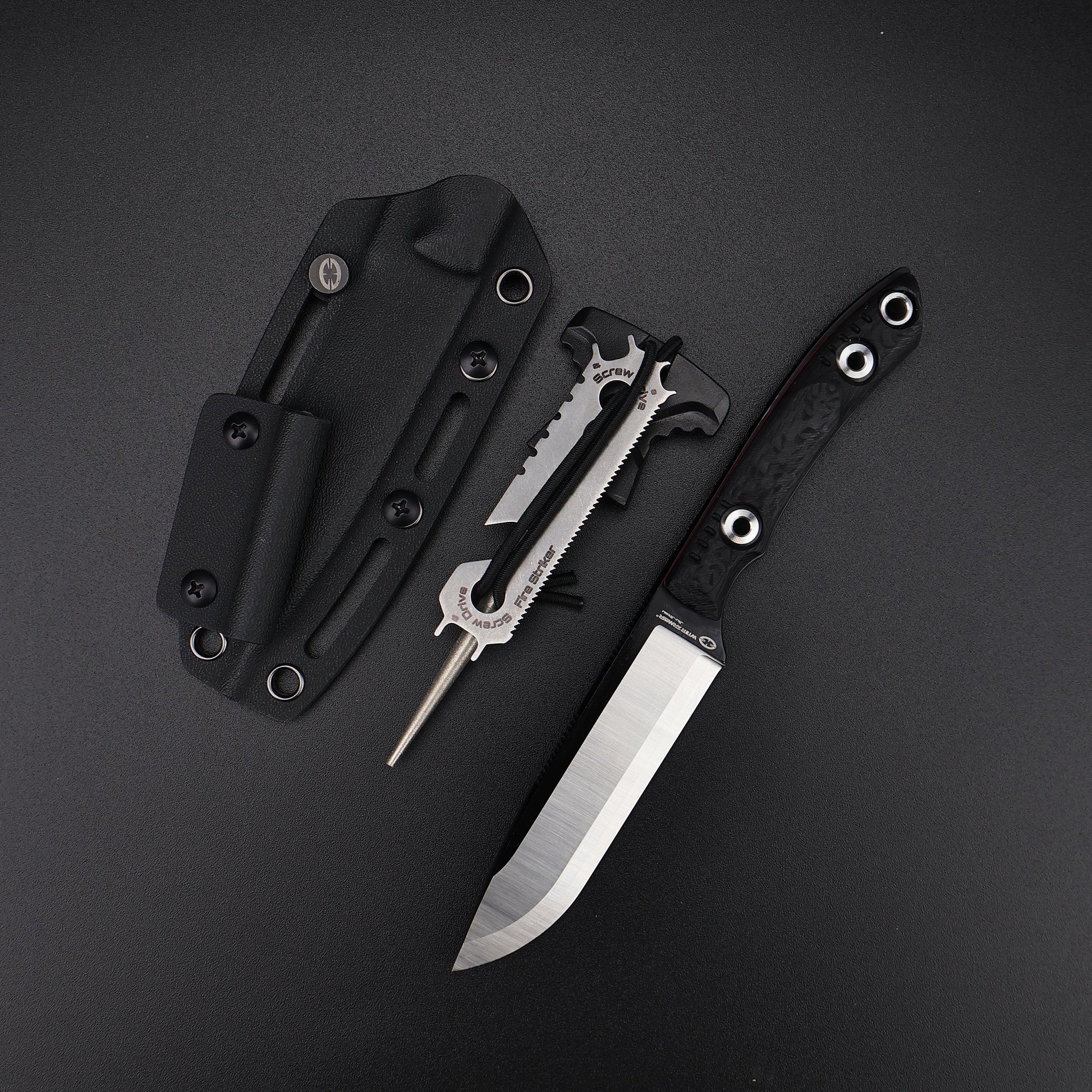 Sheath: Black Kydex Sheath with Tek-Lock Clipper & paracord lanyard *1 & T-Punch Sharpener