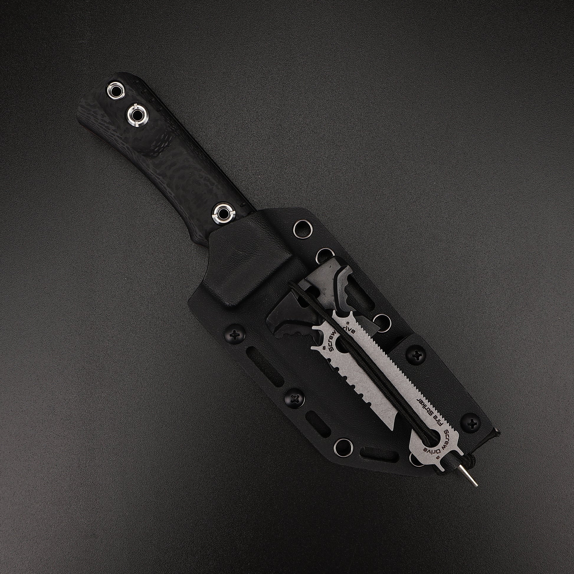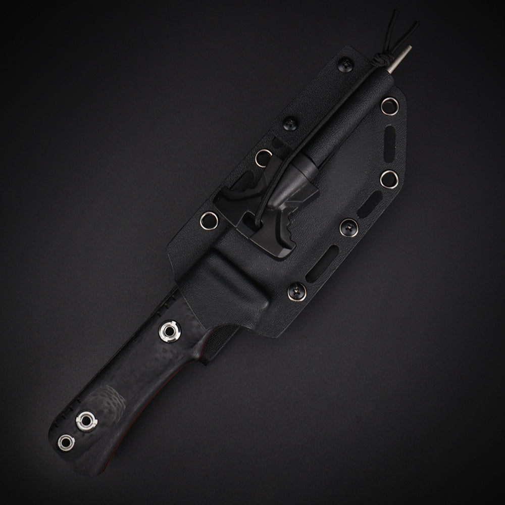 Sheath: Black Carbon Fiber Look Kydex Sheath with Tek-Lock Clipper & paracord lanyard *1 & T-Punch Sharpener