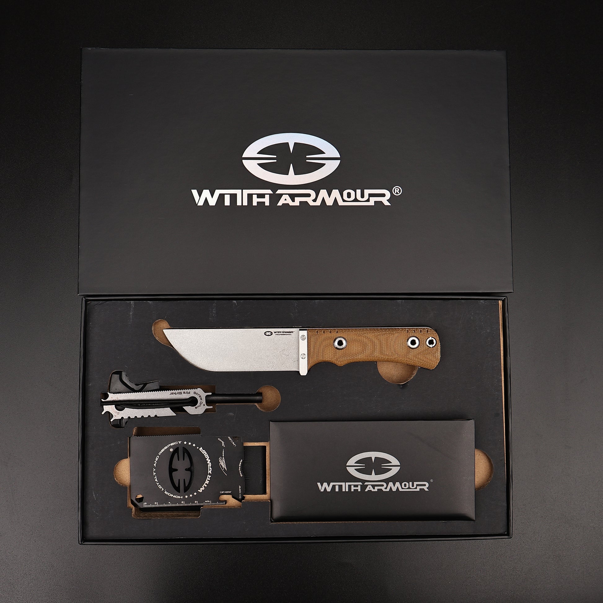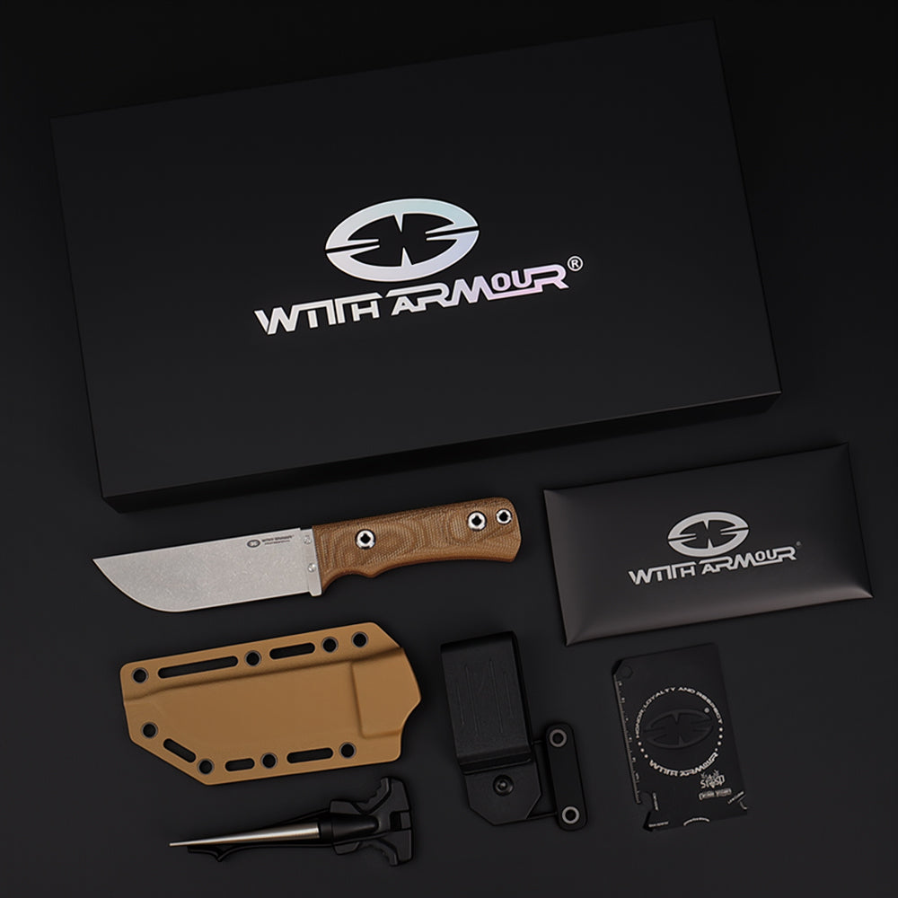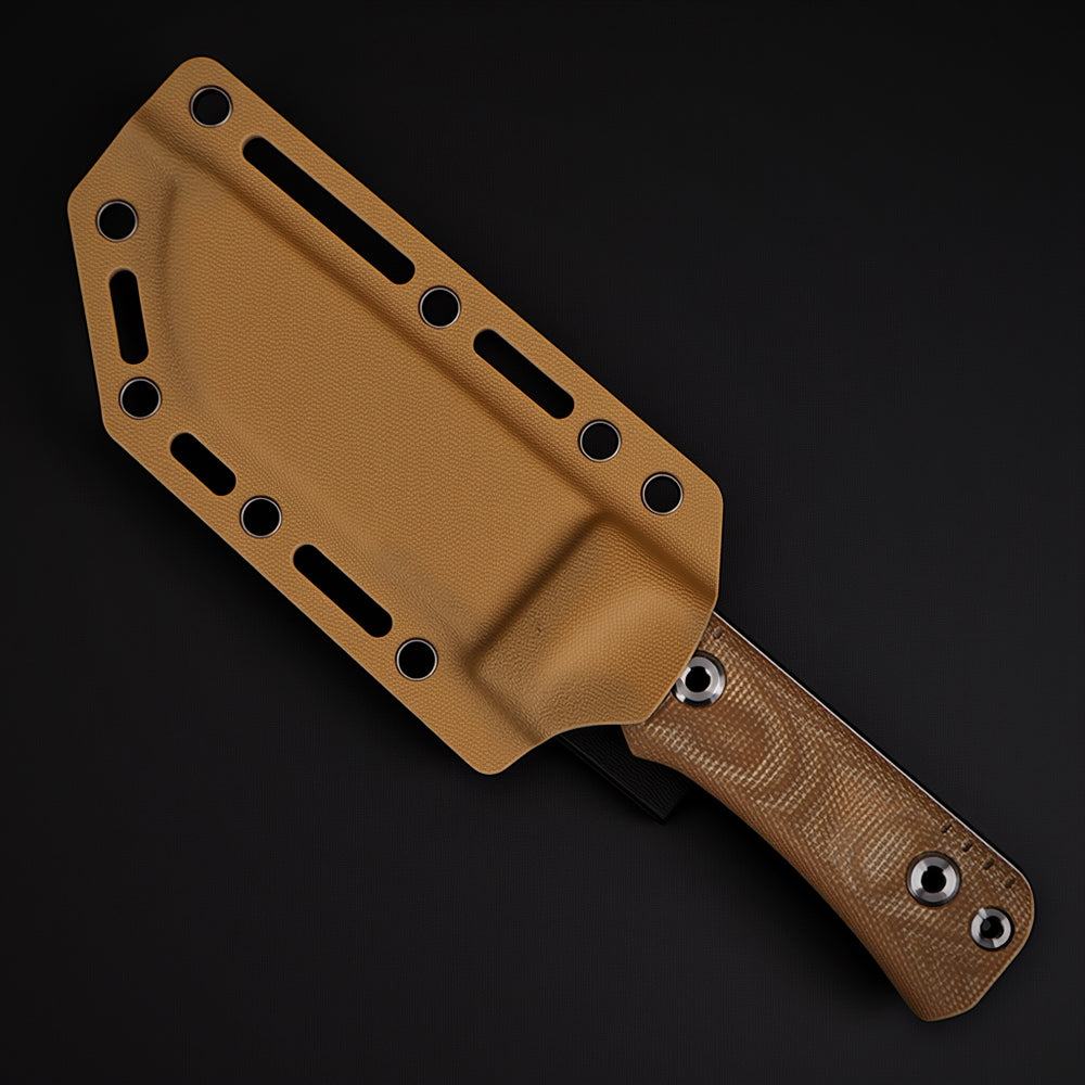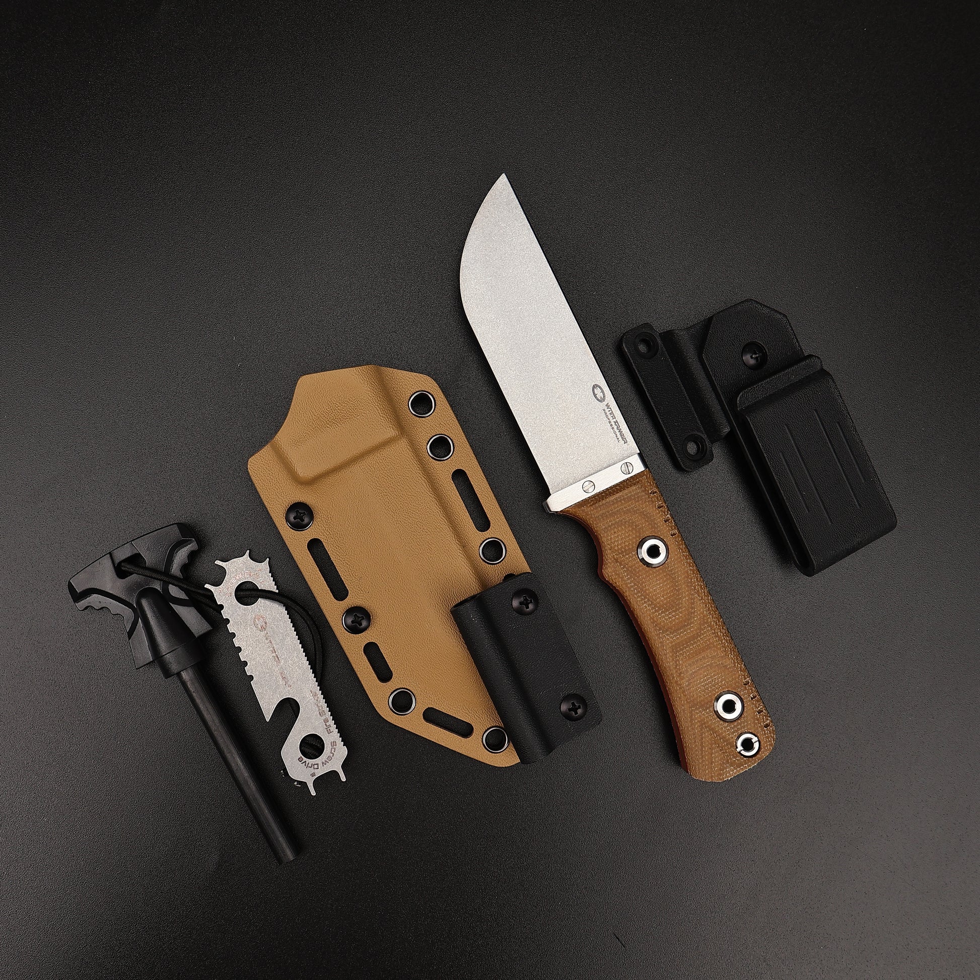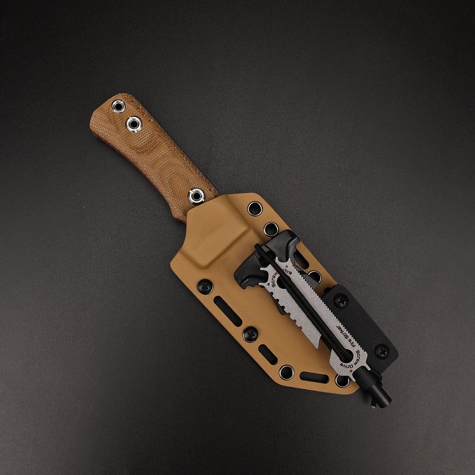 Sheath: Tan Kydex Sheath with Tek-Lock Clipper & paracord lanyard *1 & Fire Starter