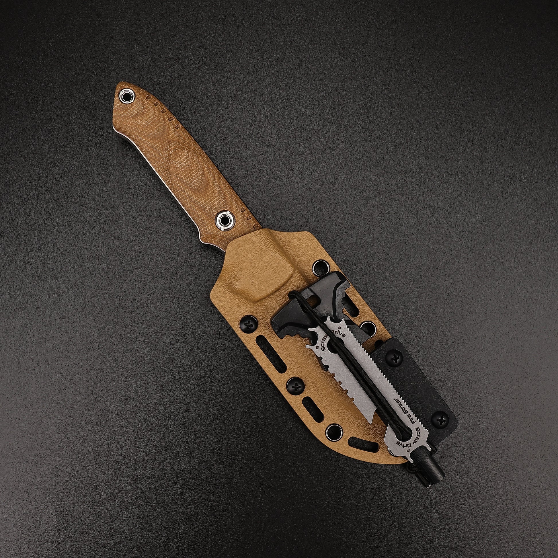Sheath: Tan Kydex Sheath with Tek-Lock Clipper & paracord lanyard *1 & Fire Starter
